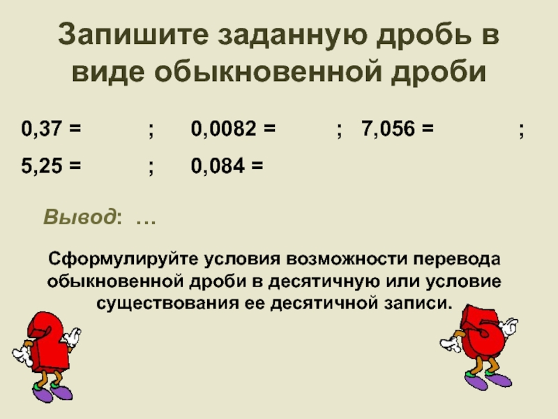 Сформулируйте условия возможности перевода обыкновенной дроби в десятичную или условие существования ее десятичной записи.