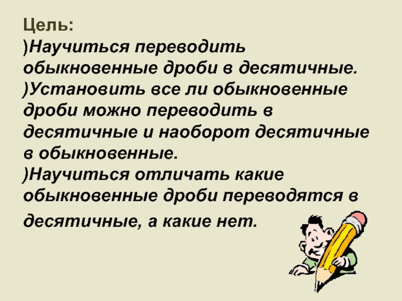 Если знаменатель обыкновенной дроби содержит хотя бы один простой множитель, отличный от 2 и 5, то эту дробь нельзя перевести в десятичную.