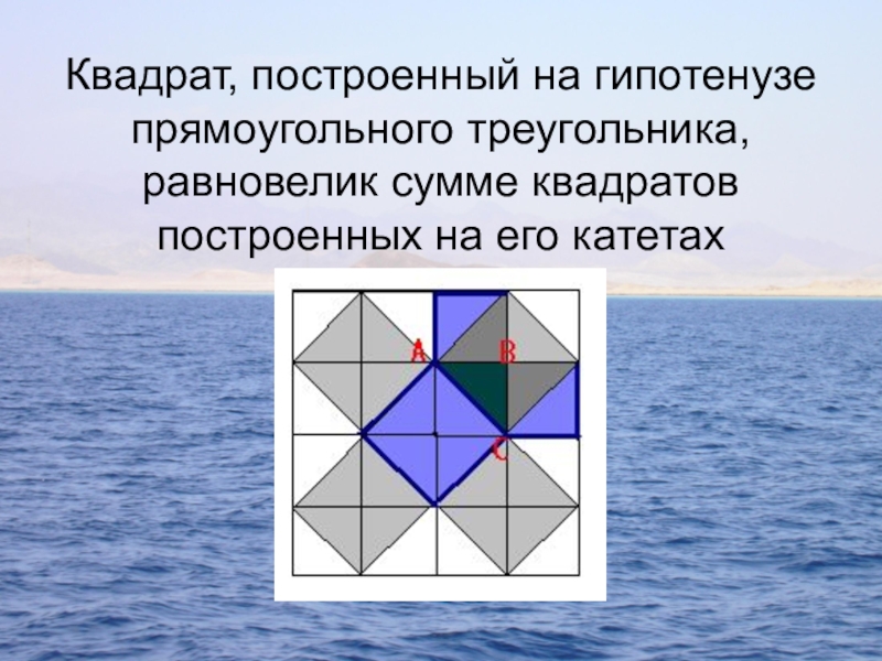 Слайд 9Квадрат, построенный на гипотенузе прямоугольного треугольника, равновелик сумме квадратов построенных на