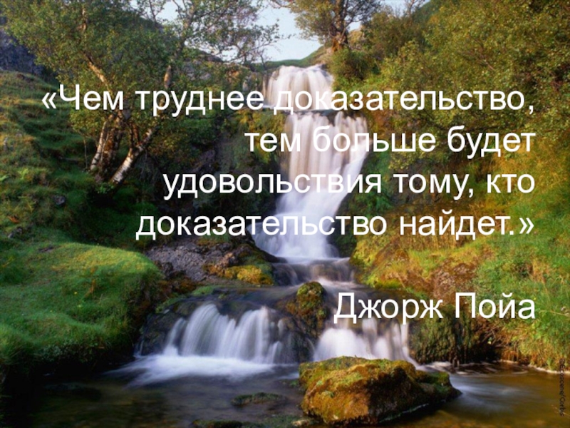 Слайд 12«Чем труднее доказательство, тем больше будет удовольствия тому, кто доказательство найдет.»