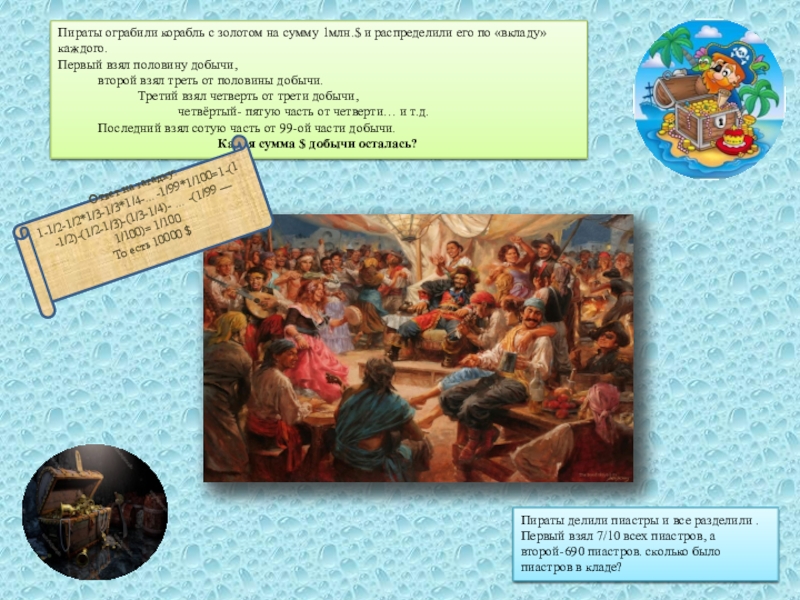 Пираты делили пиастры и все разделили . Первый взял 7/10 всех пиастров, а второй-690 пиастров. сколько было пиастров в кладе?