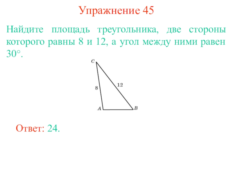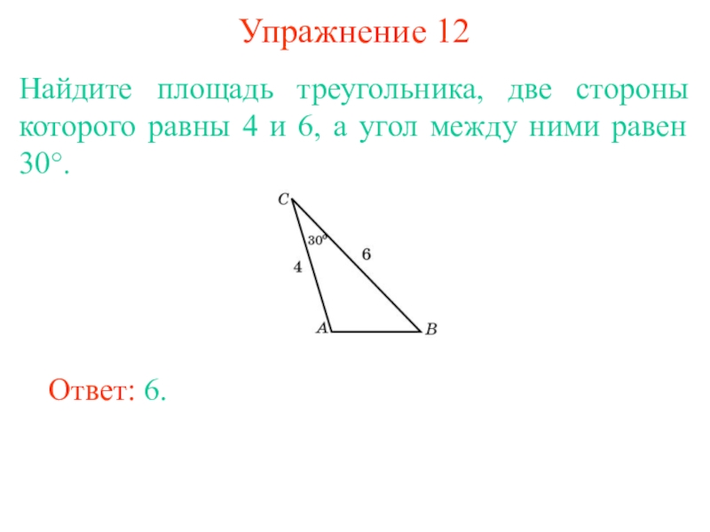 Теорема 2. Площадь треугольника равна половине произведение двух его сторон на синус угла между ними.