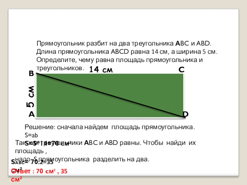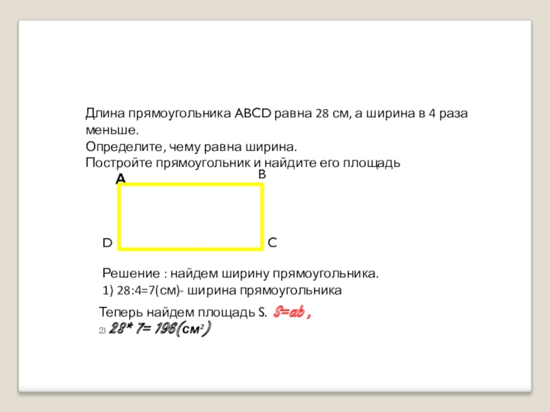 Решение: сначала найдем площадь прямоугольника. S=ab
