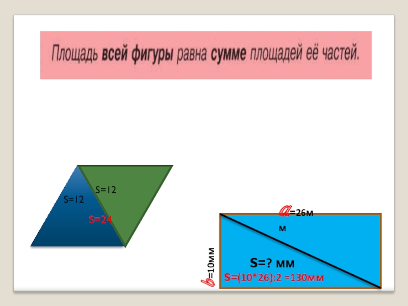 Как найти площадь всей фигуры, зная площади всех ее частей?