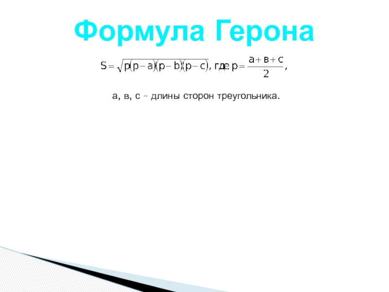 Слайд 42. Площадь треугольника равна половине произведения двух любых его сторон на