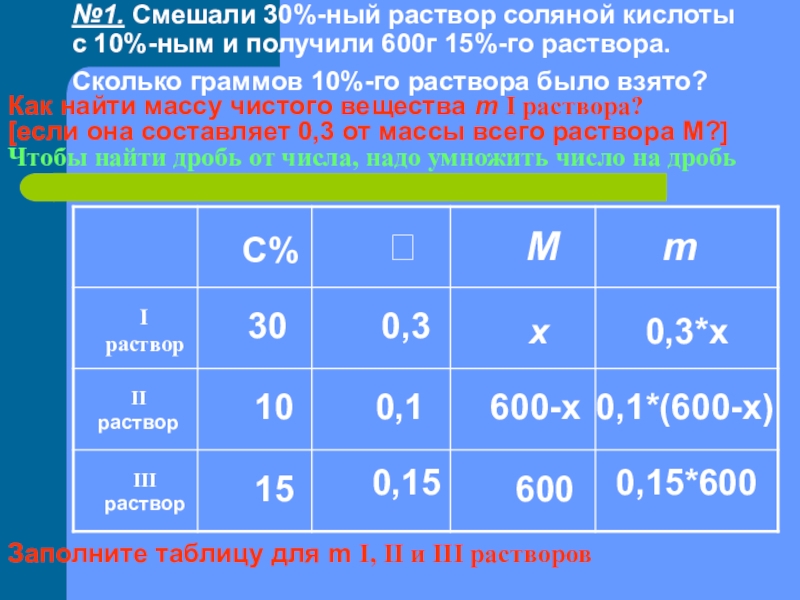 Процентное содержание (с) - это процентное содержание чистого вещества в смеси (его доля, выраженная в процентах).