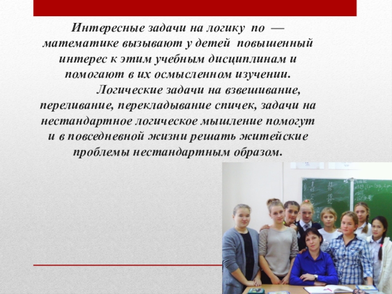Слайд 5Интересные задачи на логику по — математике вызывают у детей повышенный