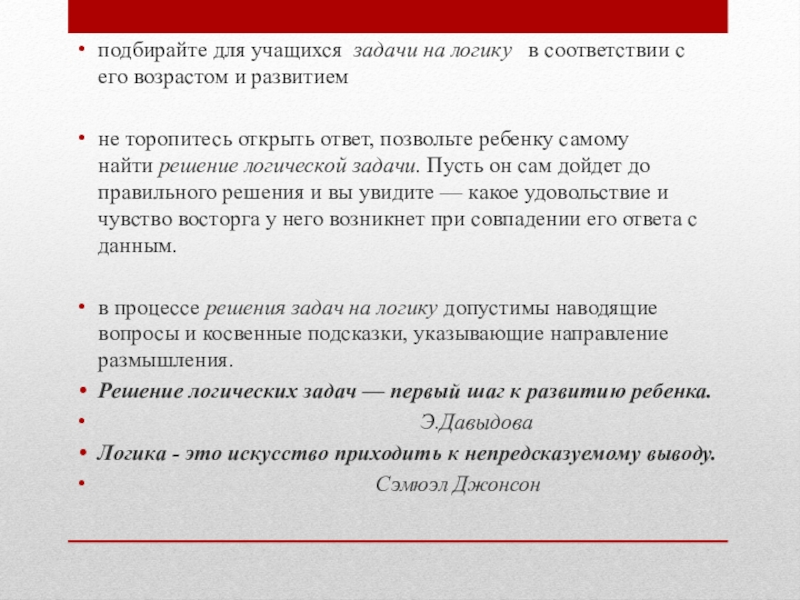 Слайд 8подбирайте для учащихся задачи на логику в соответствии с его возрастом