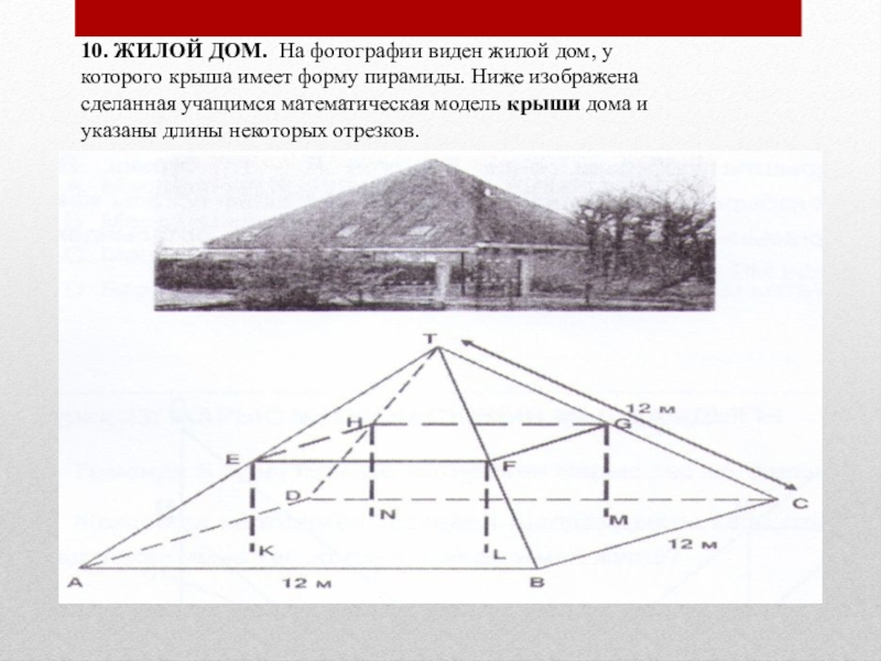 имеет форму пирамиды. Ниже изображена сделанная учащимся математическая модель крыши дома и указаны длины некоторых отрезков.
