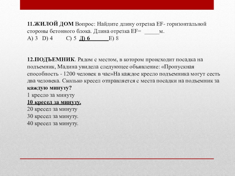 11.ЖИЛОЙ ДОМ Вопрос: Найдите длину отрезка EF- горизонтальной стороны бетонного блока.