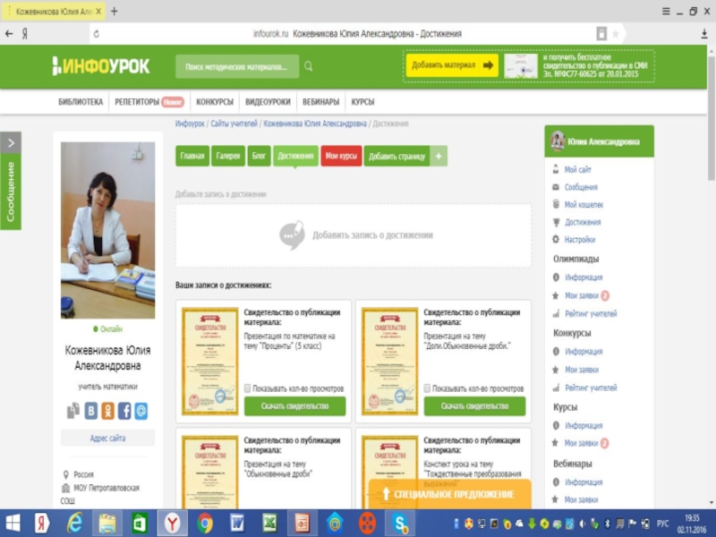 Слайд 1Учитель математики: Кожевникова Юлия Александровна,