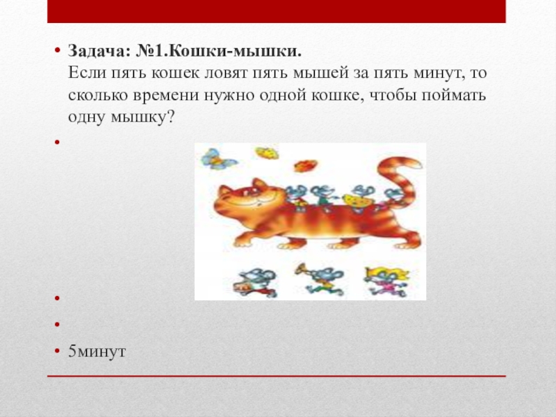 сколько времени нужно одной кошке, чтобы поймать одну мышку?