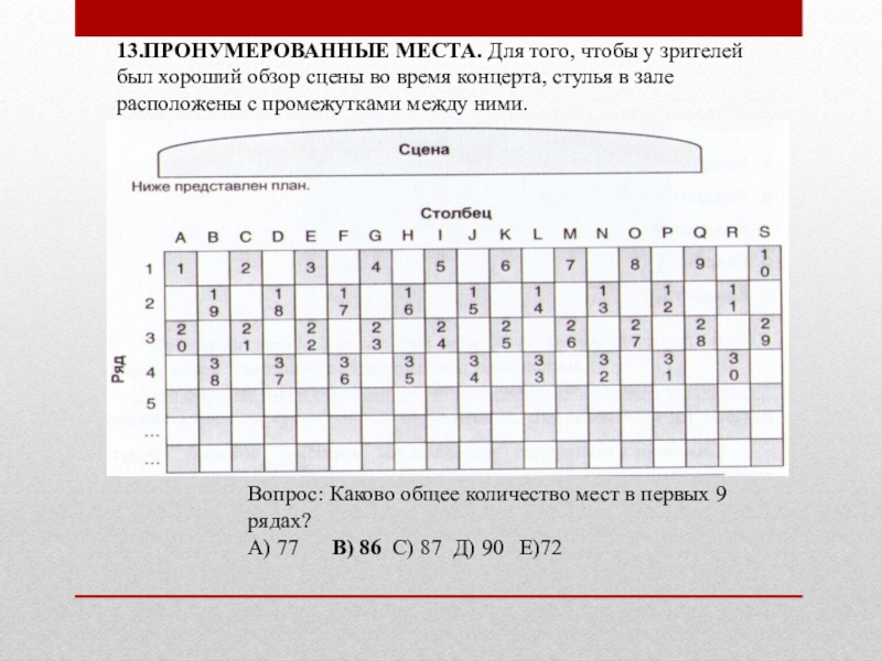 Слайд 2613.ПРОНУМЕРОВАННЫЕ МЕСТА. Для того, чтобы у зрителей был хороший обзор сцены