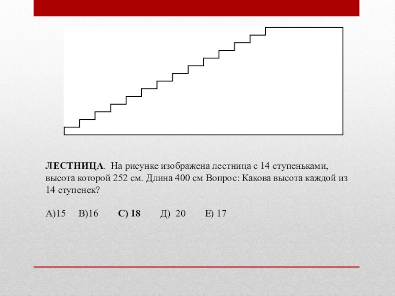 ЛЕСТНИЦА. На рисунке изображена лестница с 14 ступеньками, высота которой 252