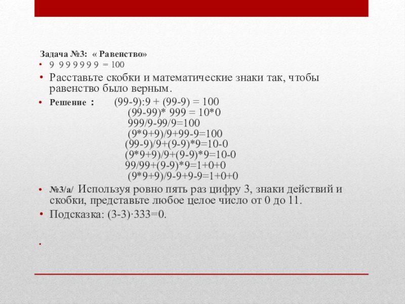 №3/а/ Используя ровно пять раз цифру 3, знаки действий и скобки, представьте любое целое число от 0 до 11.