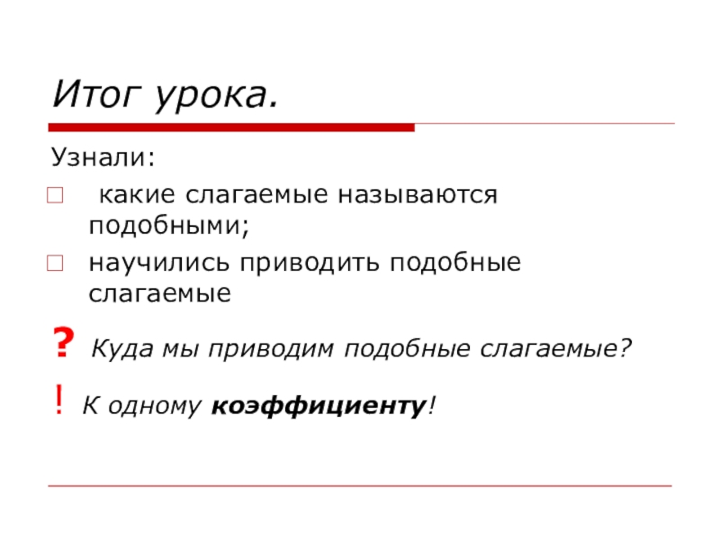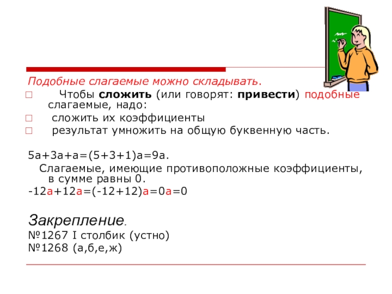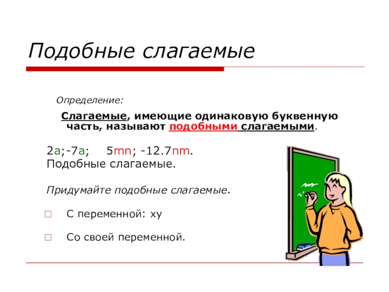 Подобные слагаемые.