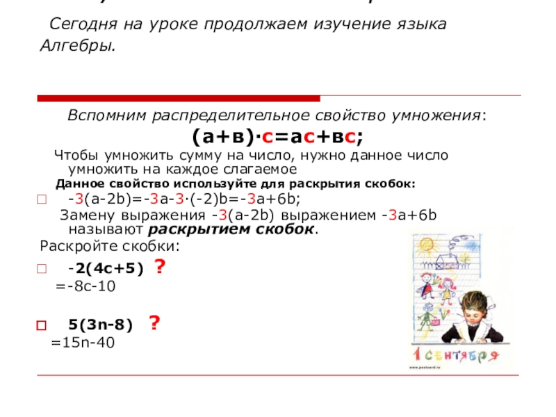 Вспомним распределительное свойство умножения: