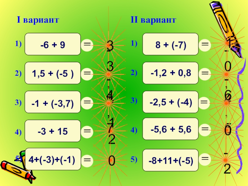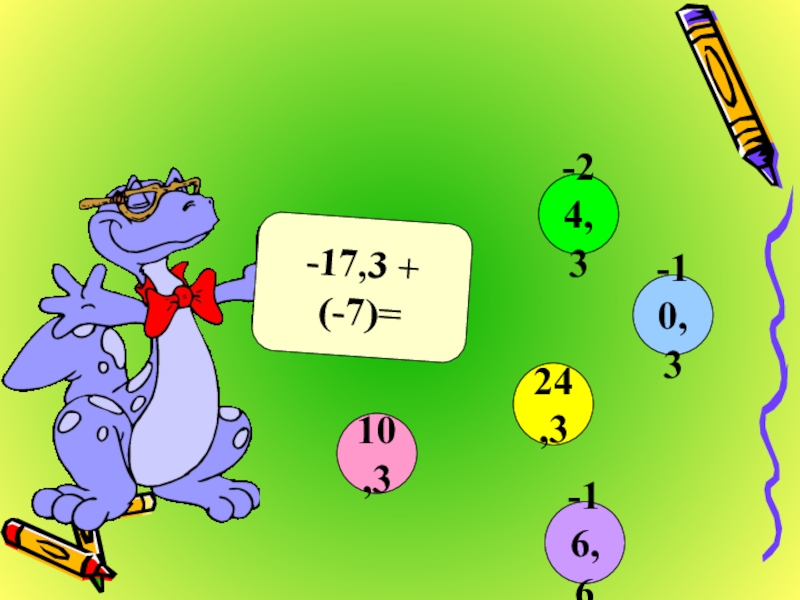 -5,7 + 3,4 = -(5,7 – 3,4) = -2,3