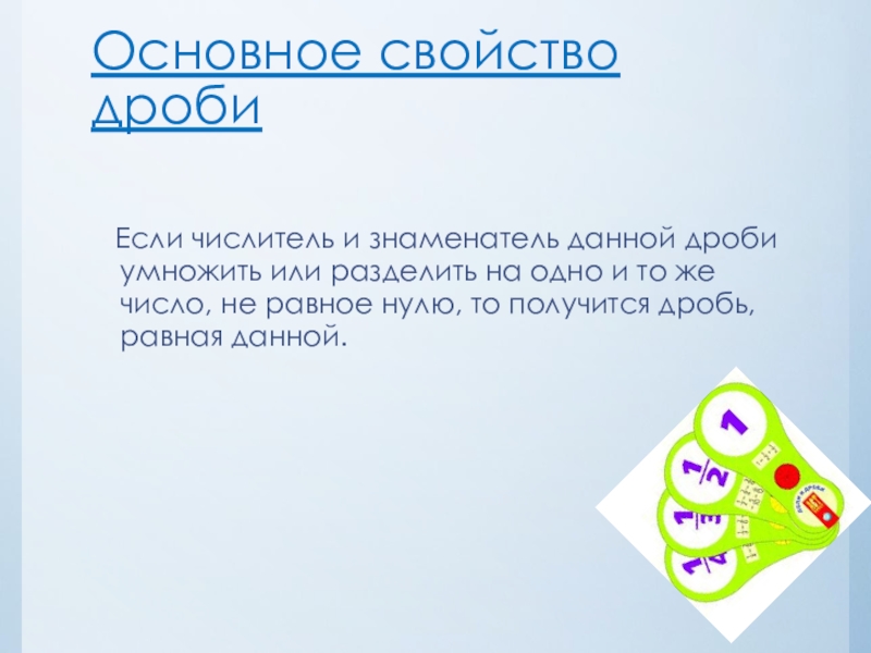 дроби умножить или разделить на одно и то же число, не равное нулю, то получится дробь, равная данной.