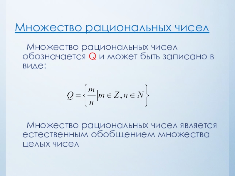 Множество рациональных чисел является естественным обобщением множества целых чисел