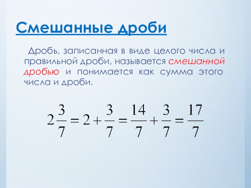 смешанной дробью и понимается как сумма этого числа и дроби.