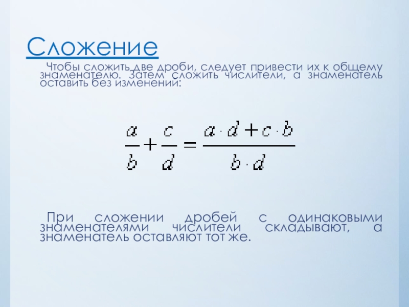 данных дробей, а знаменатель равен произведению их знаменателей, то есть: