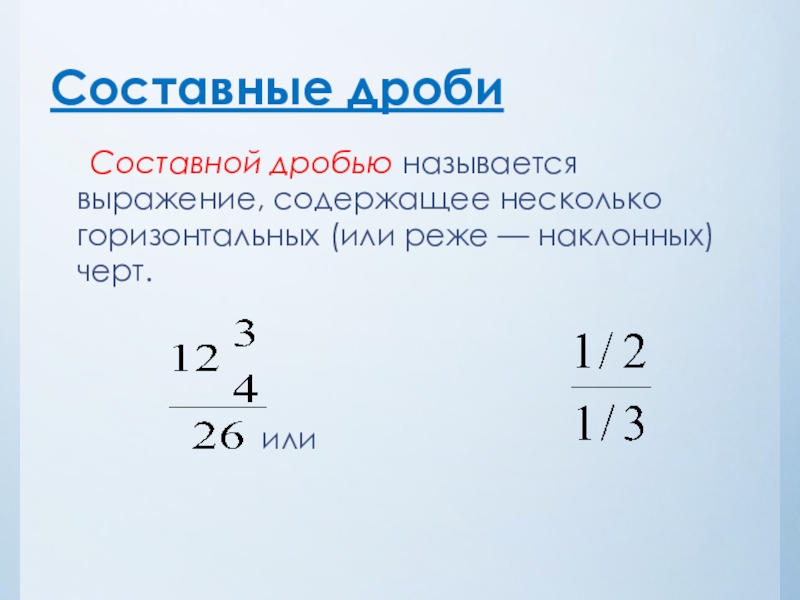 Составной дробью называется выражение, содержащее несколько горизонтальных (или реже —