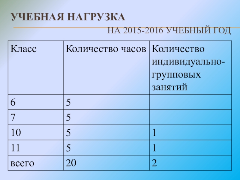 Слайд 4УЧЕБНАЯ НАГРУЗКА
