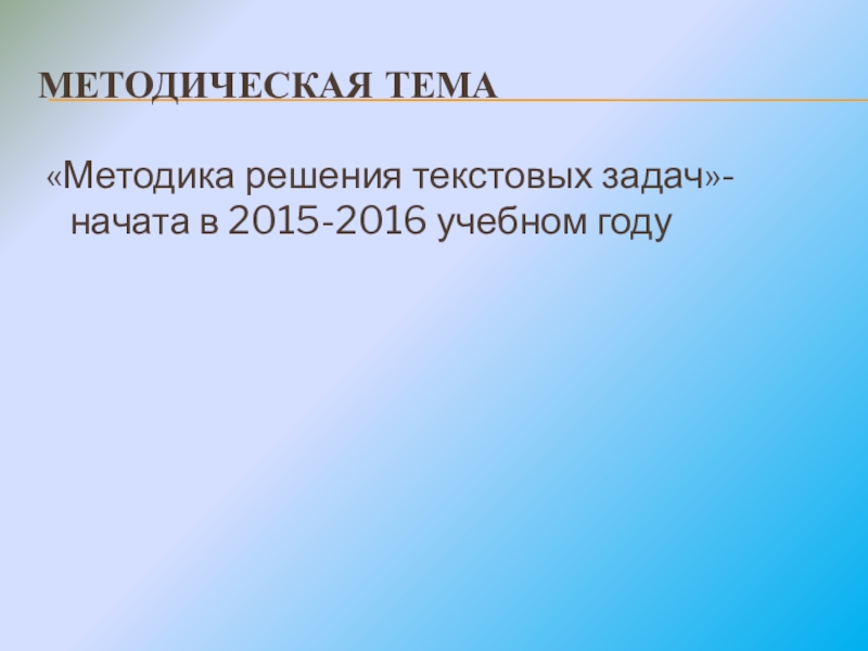МЕТОДИЧЕСКАЯ ТЕМА «Методика решения текстовых задач»- начата в 2015-2016 учебном году