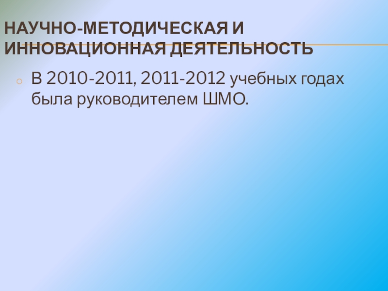 НАУЧНО-МЕТОДИЧЕСКАЯ И ИННОВАЦИОННАЯ ДЕЯТЕЛЬНОСТЬВ 2010-2011, 2011-2012 учебных годах была руководителем ШМО.