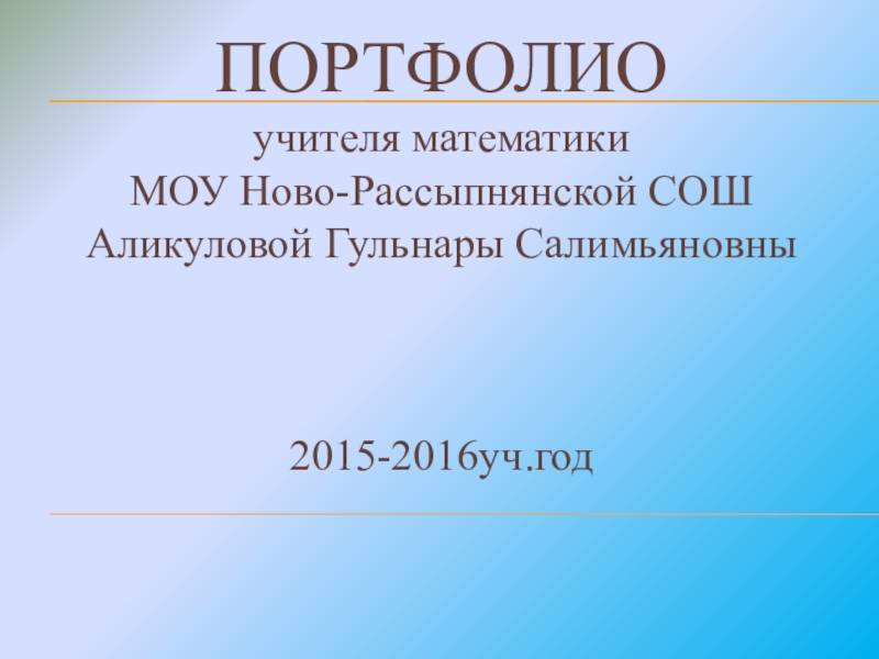 ПОРТФОЛИОучителя математики МОУ Ново-Рассыпнянской СОШАликуловой Гульнары Салимьяновны2015-2016уч.год