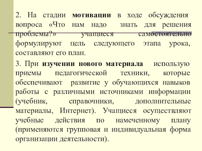 Слайд 152. На стадии мотивации в ходе обсуждения вопроса «Что нам надо