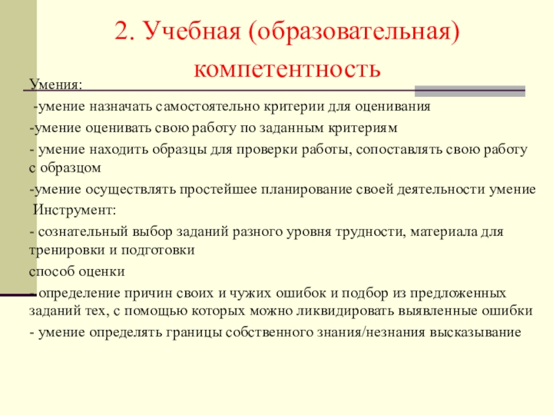 - определение причин своих и чужих ошибок и подбор из предложенных заданий тех, с помощью которых можно ликвидировать выявленные ошибки