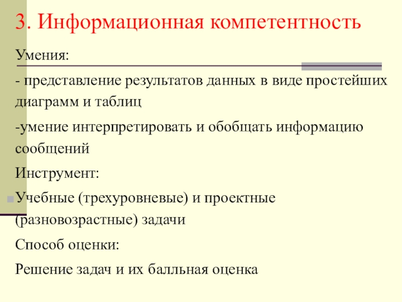 математическая компетентность – умение работать с числом, числовой информацией, владение