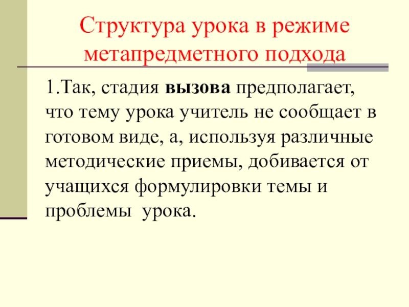 тему урока учитель не сообщает в готовом виде, а, используя различные методические приемы, добивается от учащихся формулировки темы и проблемы урока.