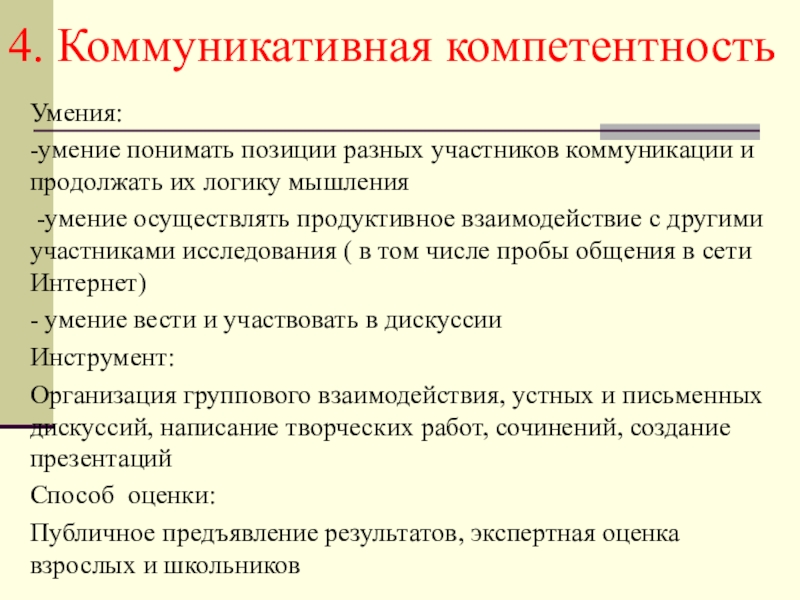 -умение осуществлять продуктивное взаимодействие с другими участниками исследования ( в том числе пробы общения в сети Интернет)