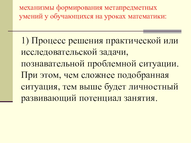Слайд 17механизмы формирования метапредметных умений у обучающихся на уроках математики: