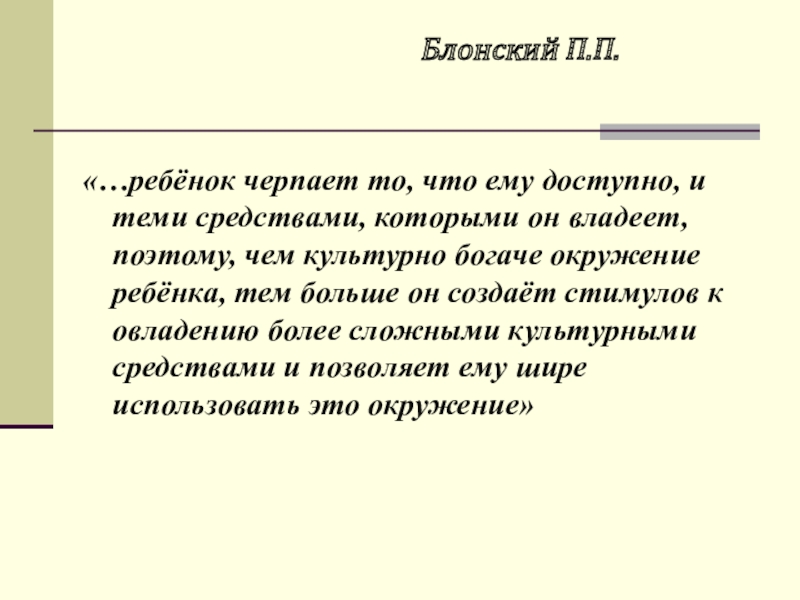 Слайд 48«…ребёнок черпает то, что ему доступно, и теми средствами, которыми он