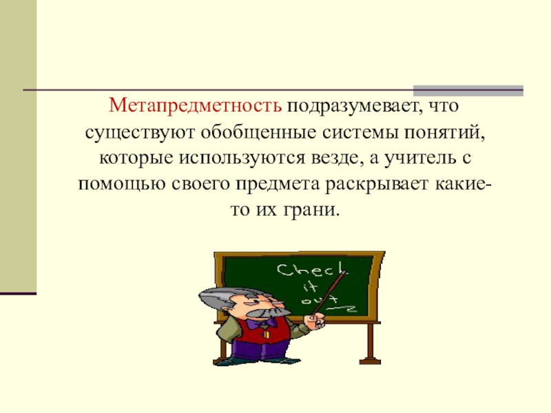 Слайд 12 Метапредметность подразумевает, что существуют обобщенные системы понятий, которые используются