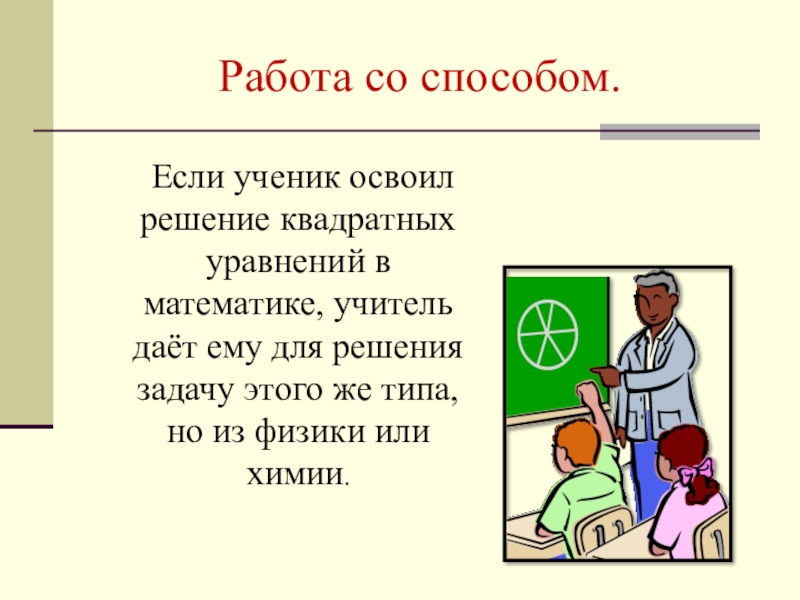 математике, учитель даёт ему для решения задачу этого же типа, но из физики или химии.