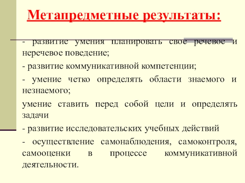 - осуществление самонаблюдения, самоконтроля, самооценки в процессе коммуникативной деятельности.