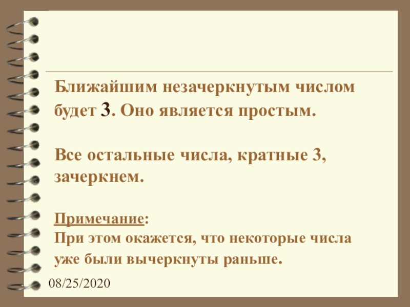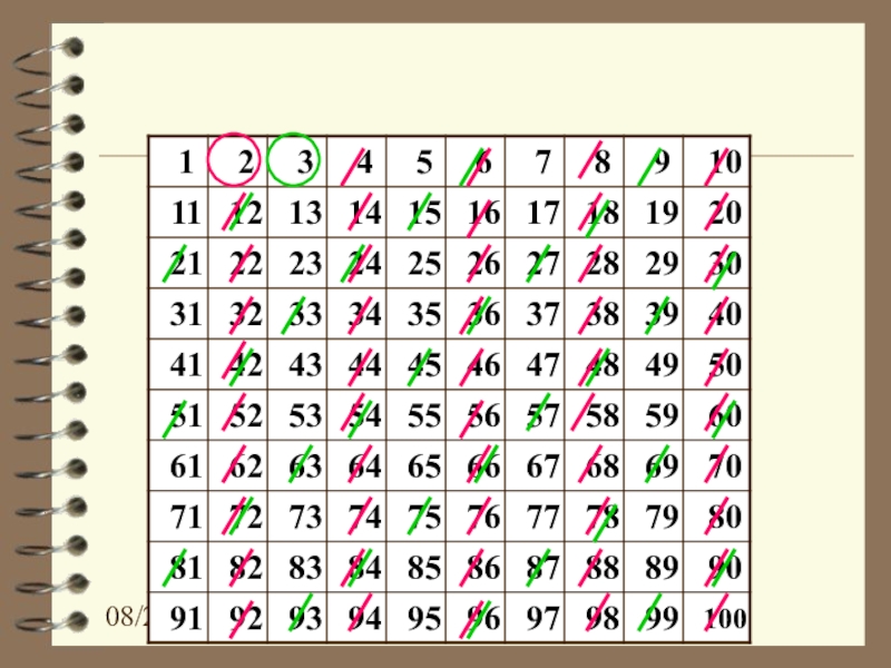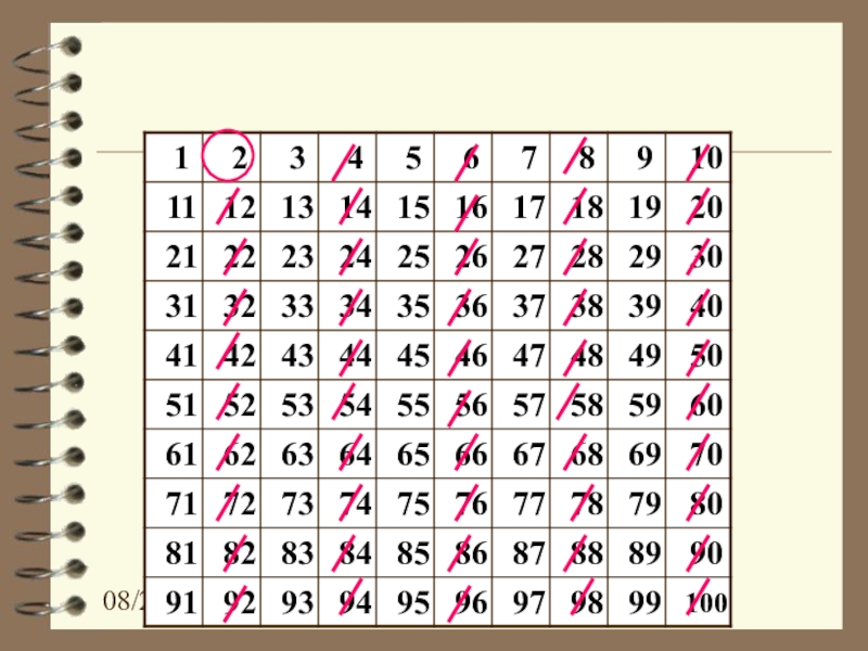 Двойка – первое простое число. Остальные числа, кратные 2, зачеркнем.