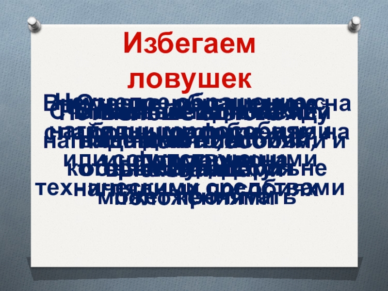 Неумелое обращение с наглядными пособиями или сопутствующими техническими средствами