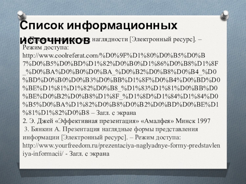 Нет ясной связи между наглядными пособиями и высказанными положениями