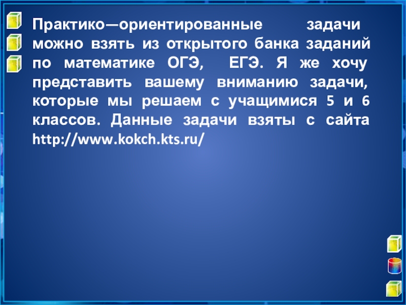Слайд 7Практико—ориентированные задачи можно взять из открытого банка заданий по математике ОГЭ,