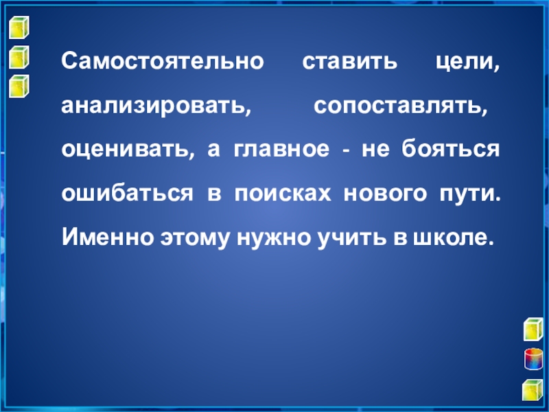 Слайд 4Самостоятельно ставить цели, анализировать, сопоставлять, оценивать, а главное - не бояться
