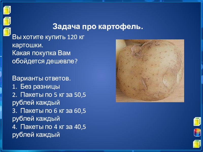 Слайд 15Задача про картофель.