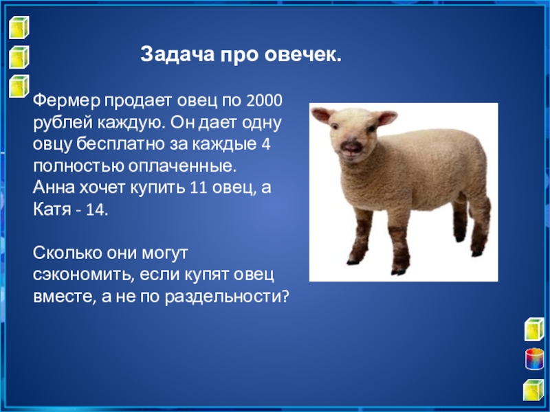 Слайд 13Задача про овечек.