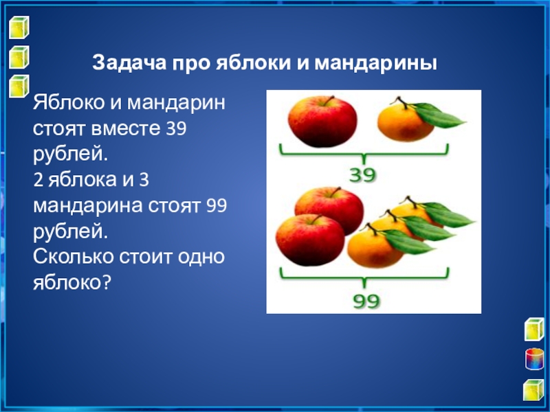 Слайд 16Задача про яблоки и мандарины