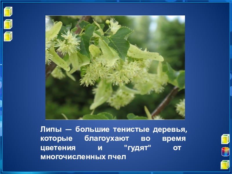 Слайд 19Липы — большие тенистые деревья, которые благоухают во время цветения и